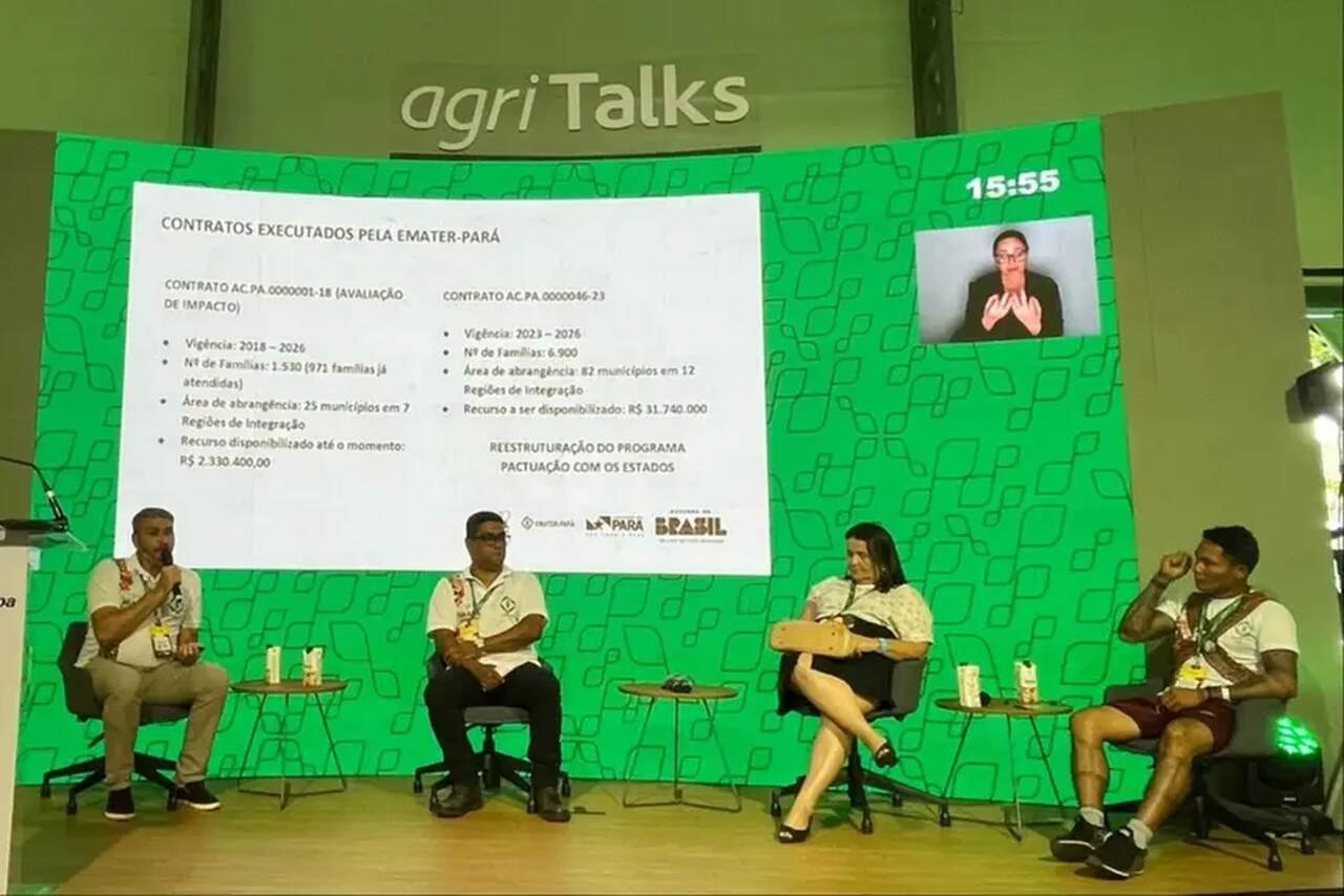 Em formato de talk-show, o Governo do Pará, por meio da Empresa de Assistência Técnica e Extensão Rural do Estado do Pará (Emater), apresentou ao público da 30ª Conferência das Nações Unidas sobre Emergências Climáticas (COP30), em Belém, na segunda-feira (17), um trabalho que vem restaurando dignidade e cidadania no meio rural paraense: o Programa de Fomento às Atividades Produtivas Rurais (Fomento Rural) é uma parceria com o Ministério do Desenvolvimento e Assistência Social, Família e Combate à Fome (MDS) que patrocina empreendimentos da agricultura familiar de famílias vulneráveis.